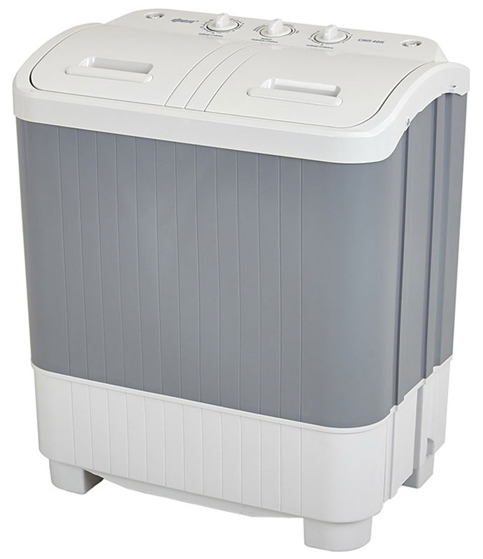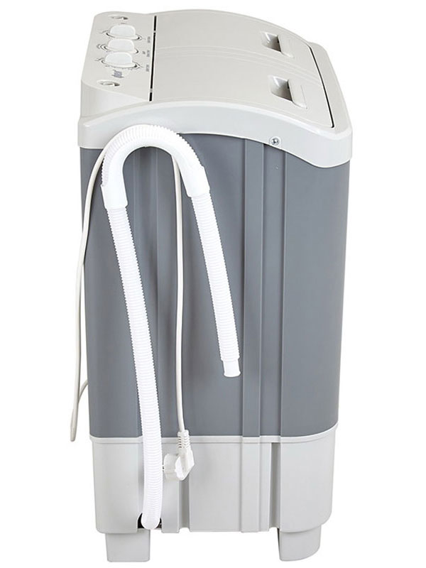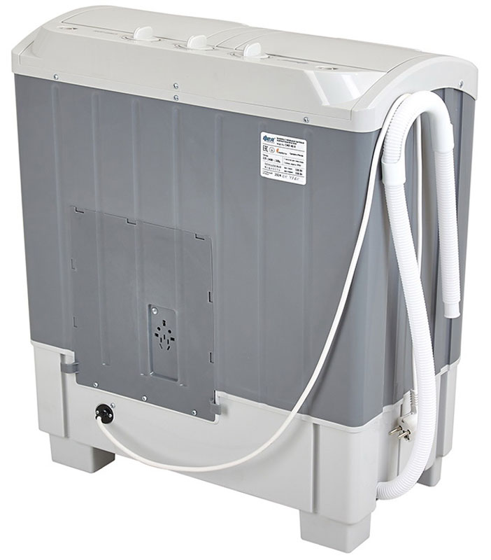 Бытовая, полуавтоматическая стиральная машина активаторного типа с функцией отжима белья. Не требует обязательного подключения к водопроводу. Управление механическое.
