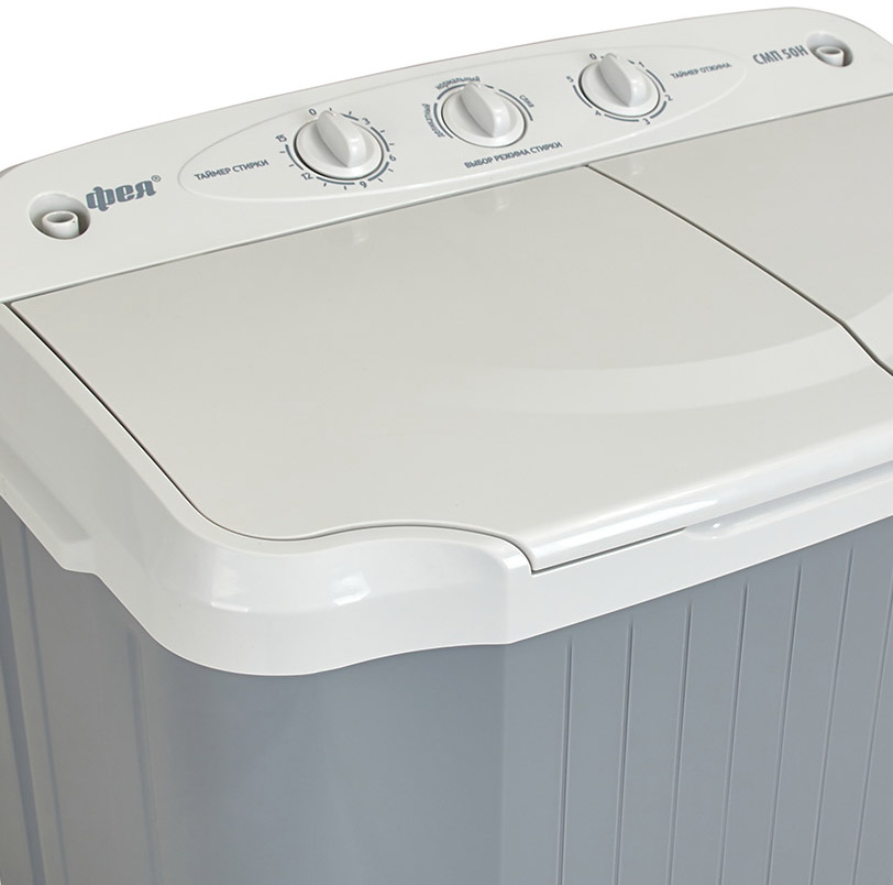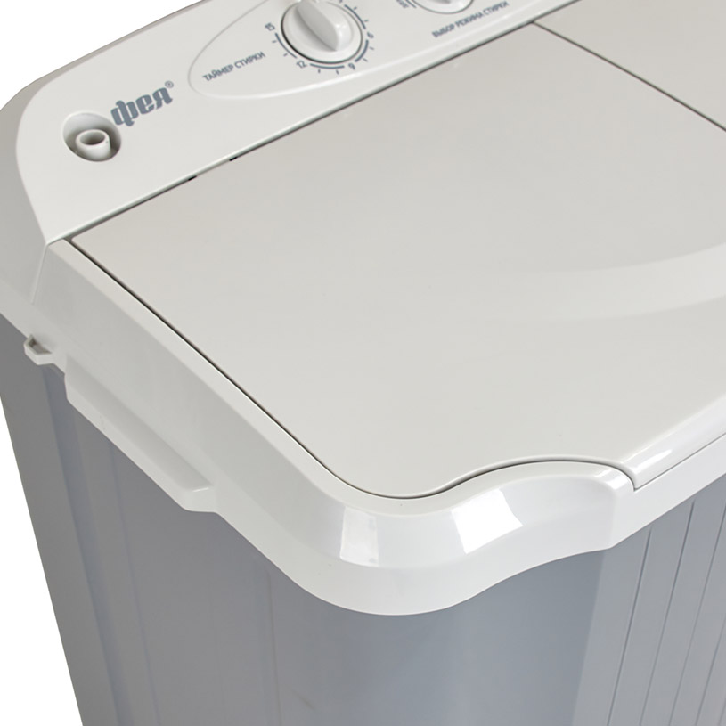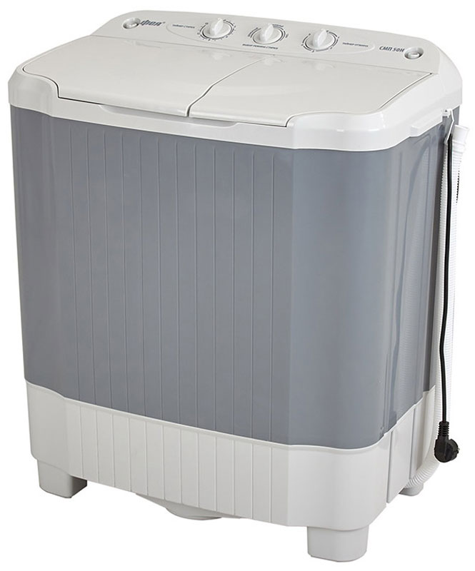 Бытовая, полуавтоматическая стиральная машина активаторного типа с функцией отжима белья. Не требует обязательного подключения к водопроводу. Управление механическое.