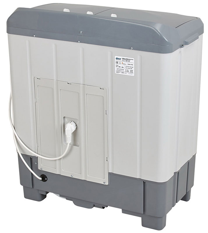 Бытовая, полуавтоматическая стиральная машина активаторного типа с функцией отжима белья. Не требует обязательного подключения к водопроводу. Управление механическое.