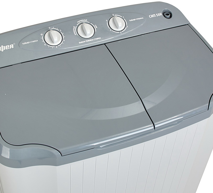 Таймер стирки до 15 мин, таймер отжима до 5 мин. Максимальное количество оборотов при отжиме 1300 об./мин. Для слива отработанной воды установлен сливной насос, который позволяет без лишних хлопот сливать воду.