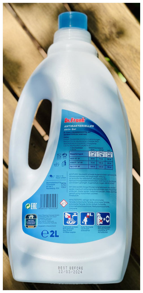 Антибактериальный гель для стирки Dr. Frank 2 л. (33 стирки) Назначение: Гель для стирки с антибактериальным эффектом, универсальный для любых видов тканей, эффективная качественная стирка от 30 С.