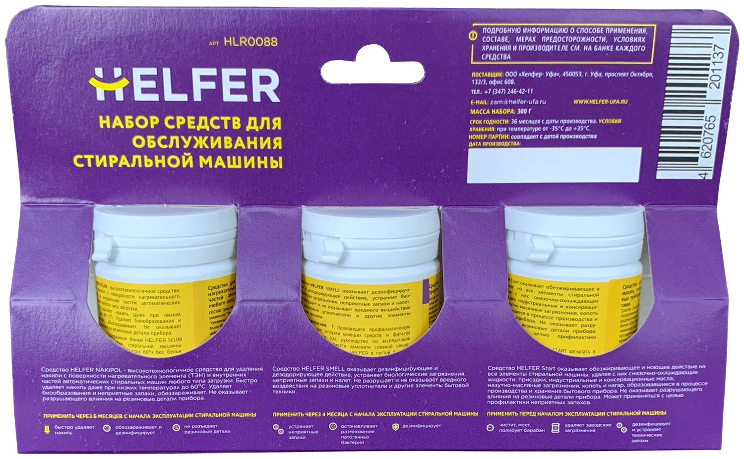 Набор средств по уходу за стиральной машиной Helfer HELFER Набор средств по уходу за стиральной машиной 3х100 г