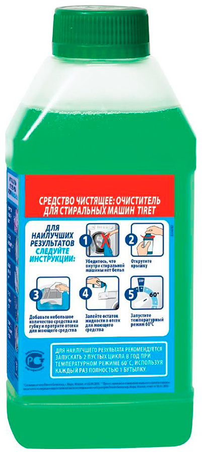 Очиститель для стиральных машин Tiret комплексно очищает вашу стиральную машину благодаря 5 мощным функциям: устраняет известковый налет и накипь, удаляет мыльный налет, обеспечивает гигиеническую чистоту, устраняет неприятный запах, защищает стиральную машину.Характеристики:Состав: неионогенные пав, ароматизатор, лимонная кислотаОбъем (мл): 250 мл