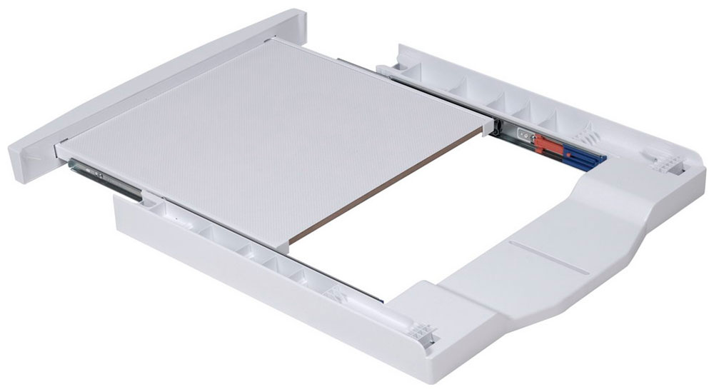 Соединительный элемент для стиральной и сушильной машиныОсобенности:Выдвижная полочка для хранения (максимум – 16 кг)Характеристики:Совместимость: любые стиральные машины шириной 59 см, глубиной от 56 смМатериал: пластик/стальОснащение: выдвижная полкаЦвет: белыйГабариты (ВхШхГ): 5.9х59х63.6 см
