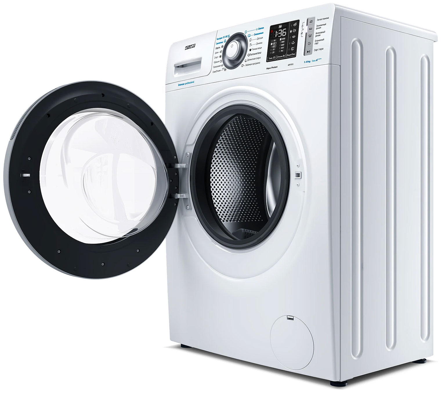Благодаря интеллектуальным программам она не только интуитивно понятна в управлении, но и обеспечивает превосходные результаты стирки при низком потреблении воды и электроэнергии. Кроме того, действует увеличенная гарантия 5 лет на двигатель. Общие данные:Габариты: 84.6×59.6×40.6 смМаксимальная загрузка: 6 кгСкорость отжима: 1000 об/минКласс стирки: AКласс отжима: CКласс энергопотребления: AПрограммы стирки: Количество программ: 16СмешанныеБыстрая 15/30 минутДеликатная стиркаПостельное бельеЛюбимая программаСлив/ОтжимХлопок Синтетика Шерсть Шелк Спорт Полоскание Рубашки Джинсы Детская Темные вещи Дополнительные функции: Количество дополнительных функций: 14Замачивание (до 2 ч, с возможностью отключения функции)Пауза/остановить и добавитьЭкономичный режим (eco)Добавить водыБез отжимаОтложенный старт (до 24 ч) Предварительная стирка Дополнительное полоскание Защита от детей Легкое глаженье Выбор температуры стирки Ночной режим Интенсивная стирка (Intensive) Управление:Тип кнопок: сенсорныеДисплей Тип дисплея: цифровойЗвуковой сигнал Безопасность:Самодиагностика Защита от перепадов напряжения в электросети Электронный контроль дисбаланса (защита от повышенных вибраций и шума) Блокировка двери от открывания Охлаждение воды перед сливом Контроль уровня пены Система защиты от протечек AQUA-PROTECT Защита от включения при ошибочном нажатии кнопок (защита от детей)Дополнительная информация:Глубина по корпусу: 406 ммГлубина по панели управления с учетом кнопок и ручек: 451 ммГлубина с люком: 489 ммДиаметр загрузочного отверстия: 340 ммЦвет внутреннего обрамления дверцы: темно-серыйЦвет наружного обрамления дверцы: серебристыйТип мотора: коллекторныйУровень шума при стирке: 59 дБУровень шума при отжиме: 73 дБМатериал бака: полипропиленМатериал барабана: нержавеющая стальНоминальная потребляемая мощность: 1900 ВтГребень с антибактериальной добавкойУплотнитель с антибактериальной добавкойЛоток для моющих средств с антибактериальной добавкойВес: 61 кгПотребляемая мощность в режиме Выключено, Вт, не более: 0.5 ВтПотребляемая мощность в режиме Оставлено включенным, Вт, не более: 1 ВтСреднее значение содержания остаточной влаги: 53 Среднее время выполнения стандартной программы стирки белья из хлопка 40 С (1/2 загрузка): 165 минПродолжительность режима Оставлено включенным, мин, не более: 15 МинСр.