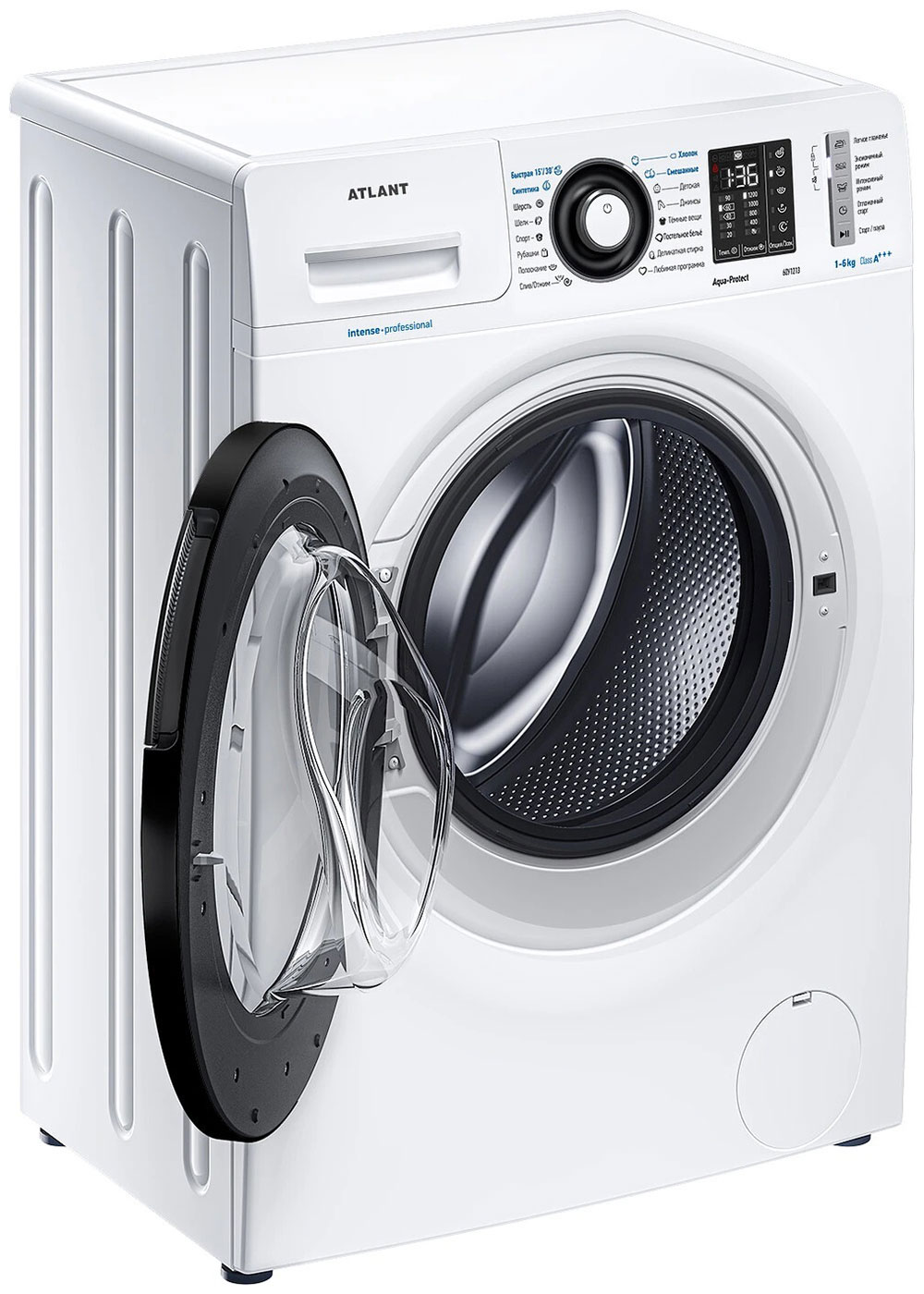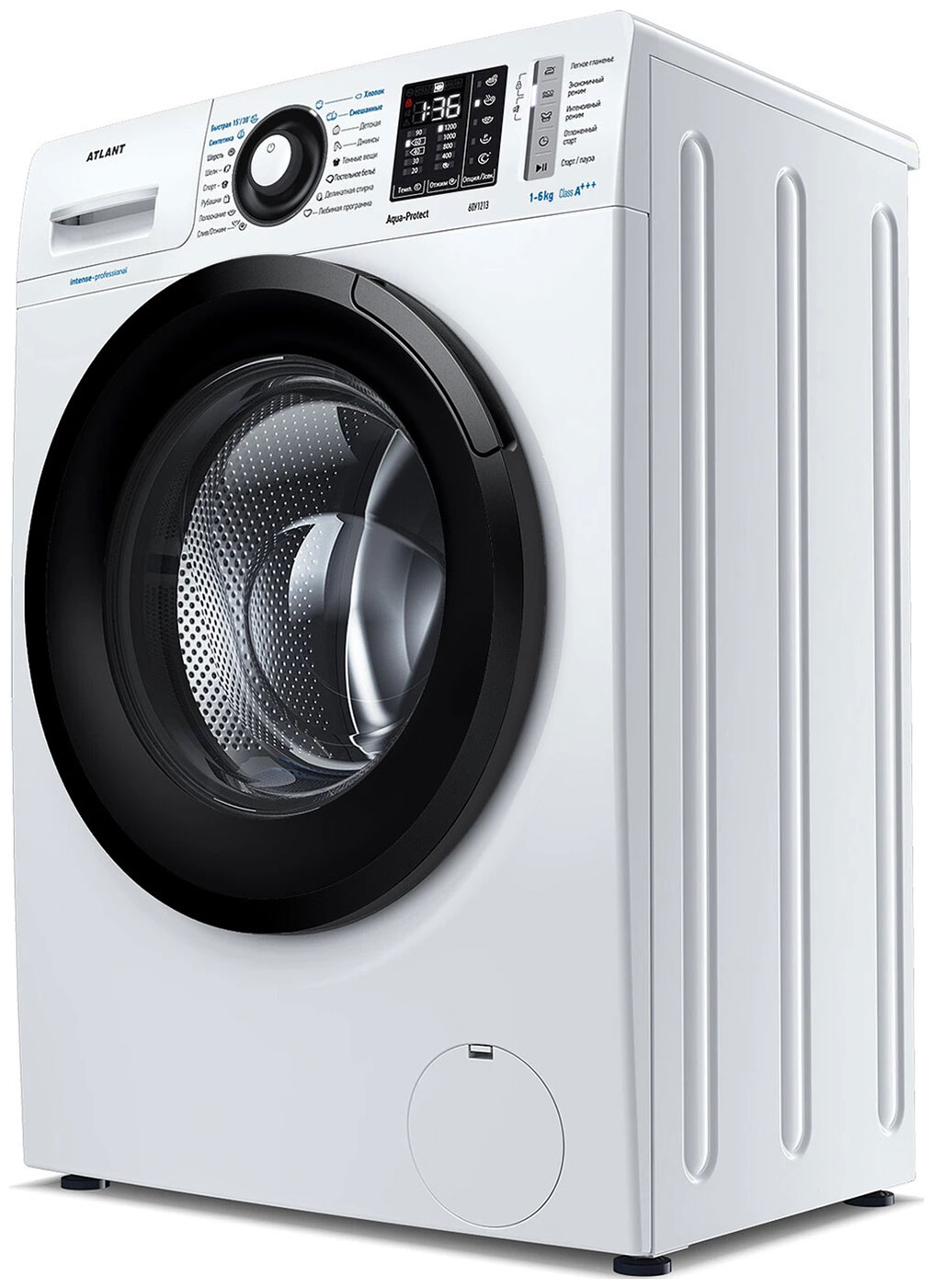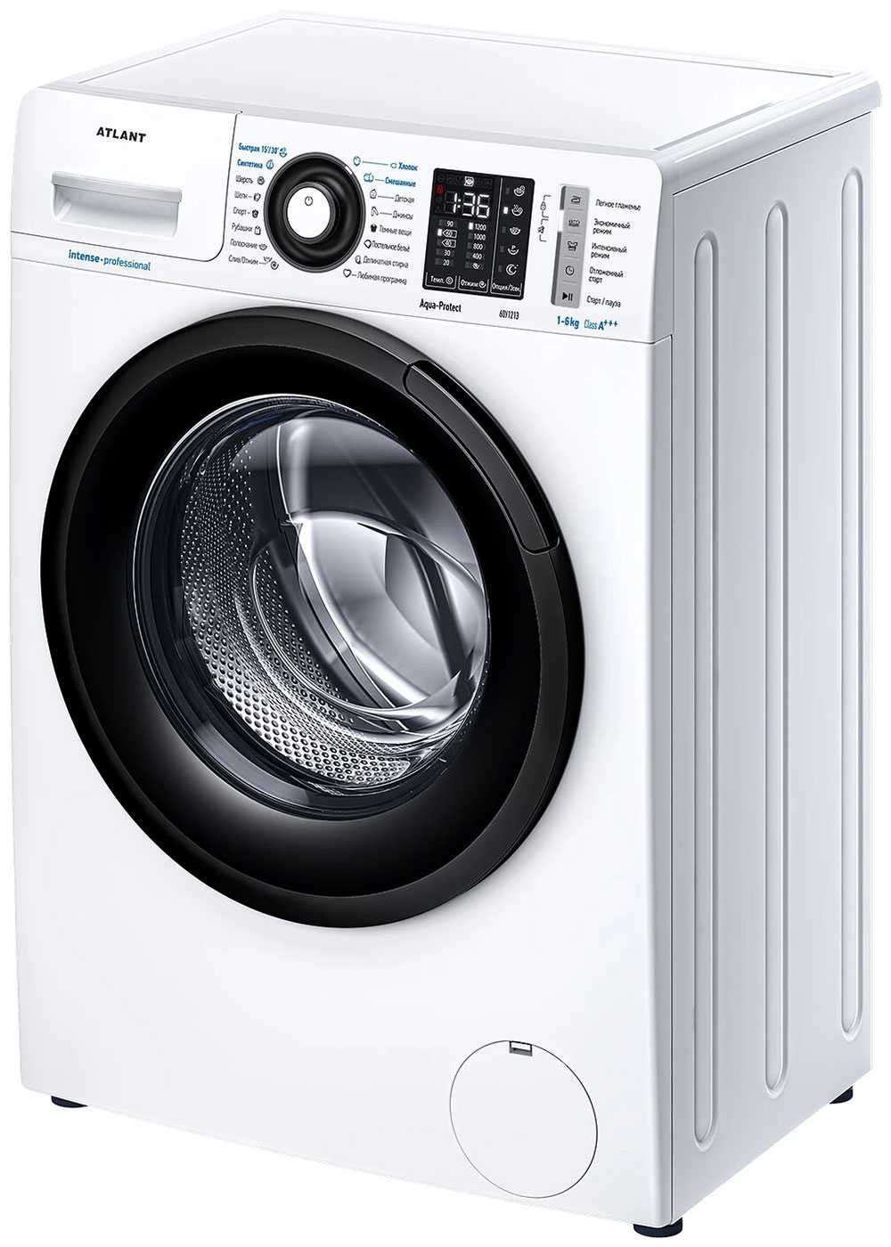Новая стиральная машина Атлант серии INTENSE PROFESSIONAL имеет уникальный дизайн, который прекрасно дополнит любой интерьер своим внешним видом. С помощью новых сенсорных технологий достаточно легкого касания для выбора функций и программ. Светодиодные индикаторы и сегментный дисплей машины размещены на панели управления под небольшим углом, что облегчает визуальное восприятие отображаемой информации о работе машины.