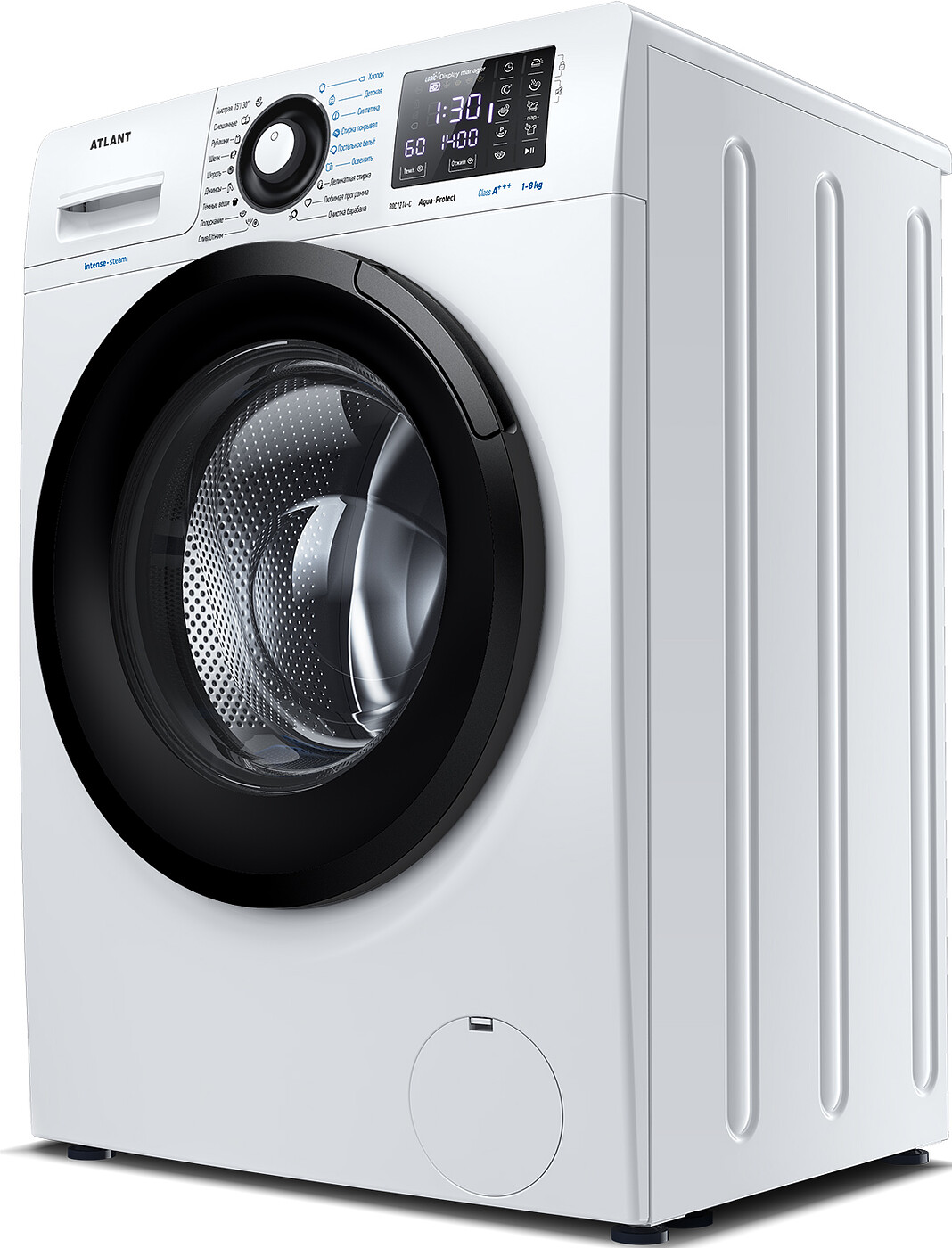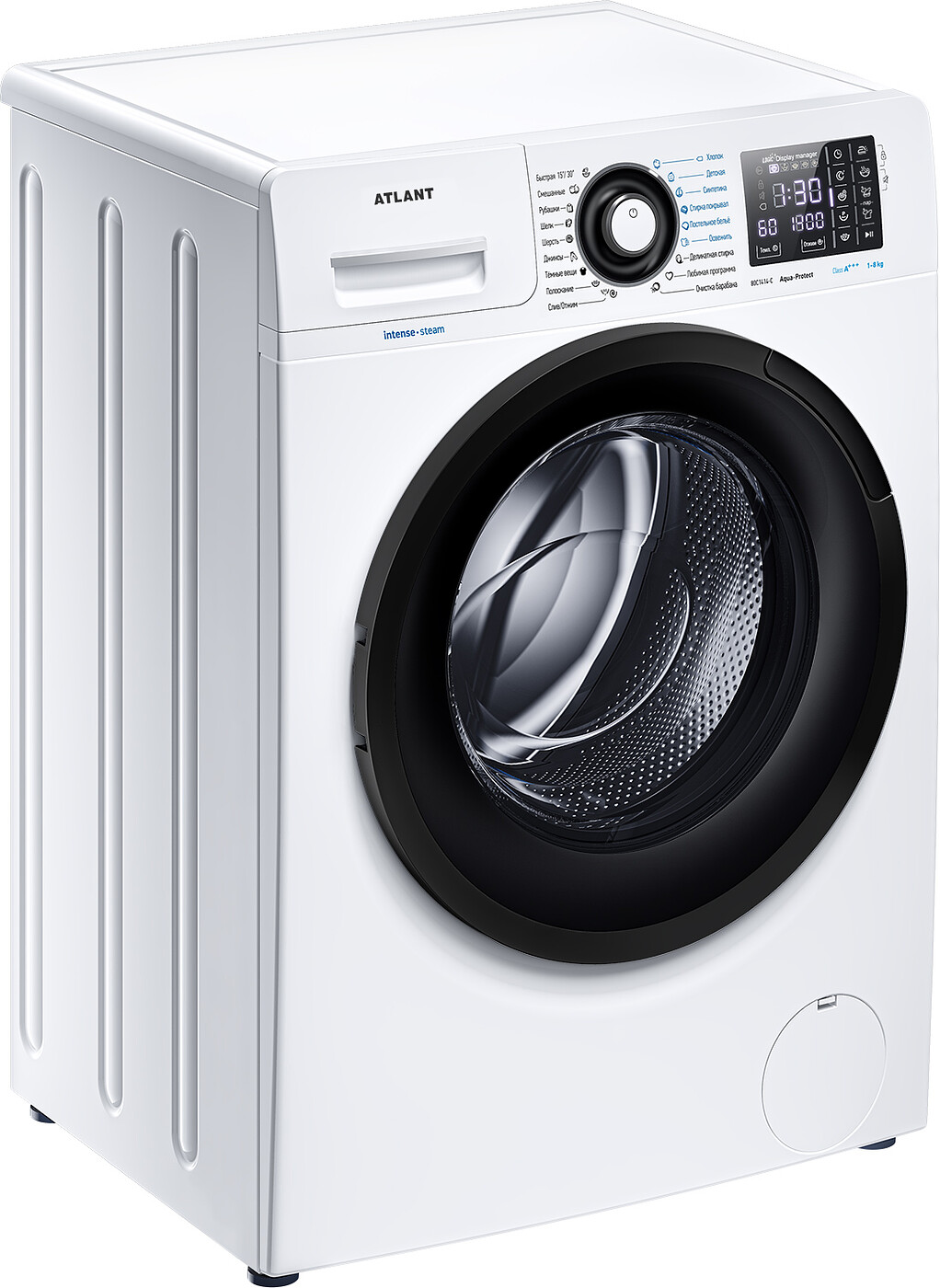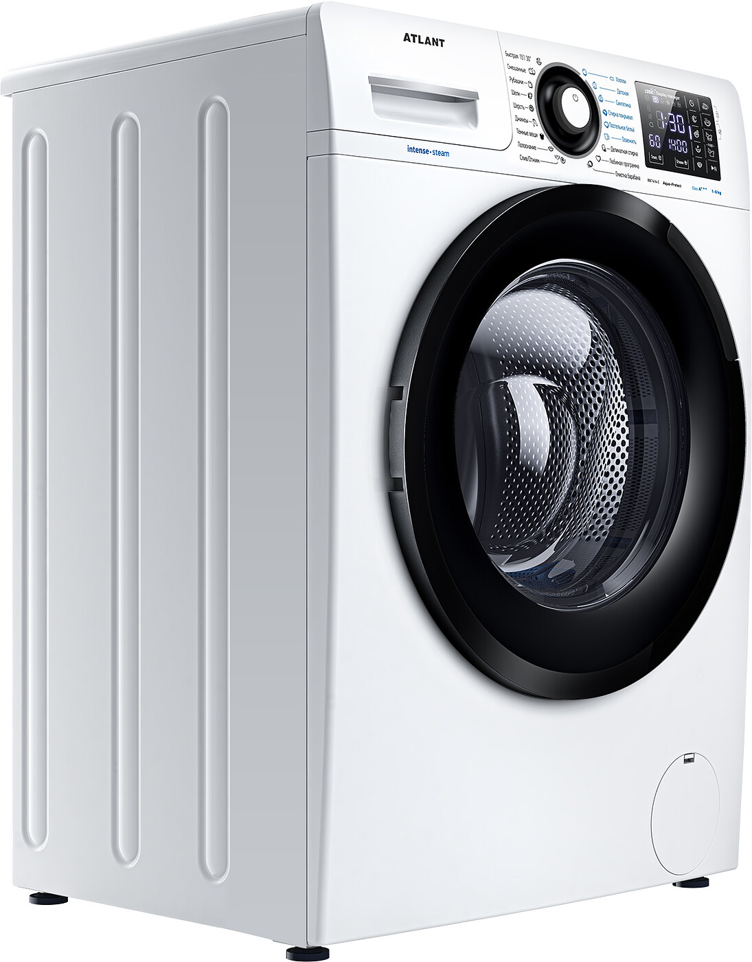 Новая стиральная машина ATLANT серии INTENSE EXPERT имеет уникальный дизайн, который прекрасно дополнит любой интерьер своим внешним видом. С помощью новых сенсорных технологий достаточно легкого касания для выбора функций и программ. Светодиодные индикаторы и сегментный дисплей машины размещены на панели управления под небольшим углом, что облегчает визуальное восприятие отображаемой информации о работе машины.