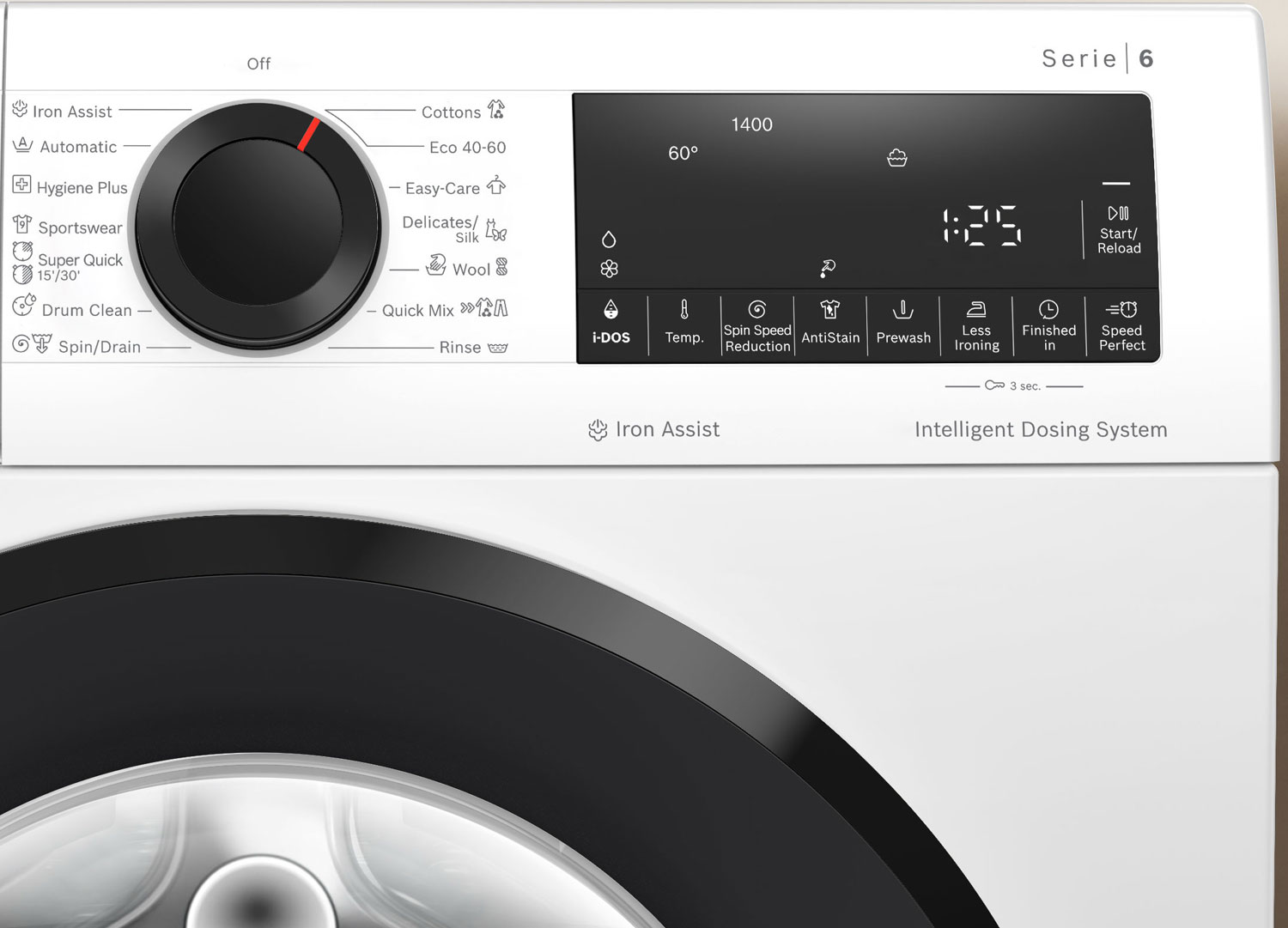 Общие данные: Габариты: 84.8×59.8×59 смМаксимальная загрузка: 9 кгСкорость отжима: 1400 об/минКласс стирки: AКласс отжима: BКласс энергоэффективности: AПрограммы: Эко 40-60С, хлопок, легкий уход, быстрая смешанная, деликатная/шелк, шерсть, легкая глажка, автоматическая, гигиена плюс, спортивная одежда, супер быстрая 15/30 мин, очистка барабана, отжим и слив, полосканиеДополнительные функции: Отсрочка окончания программыВыбор пятенСтарт/пауза с функцией дозагрузки (возможность добавления белья)Выбор скорости отжимаВыбор температуры стиркиПредварительная стиркаVarioSpeedСтепень загрязнения бельяУправление и индикация: Светодиодный дисплейИндикатор оставшегося времениСистемы безопасности: Контроль пенообразования Подавление дисбаланса при отжиме Блокировка от детей Защита от протечек воды: МногократнаяДополнительная информация: EcoSilence Drive – высокоэффективный и очень тихий моторПотребление энергии в кВтч за цикл программы eco 40-60: 0,489 кВтчГлубина с открытой дверью на 90 градусов: 1074 ммОбъем внутреннего барабана: 65 лРегулируемые ножки: 12 ммДлина шнура питания: 160,0 смi-DOS – автоматическое дозированиеАвтоматическая регулировка количества воды в зависимости от загрузки