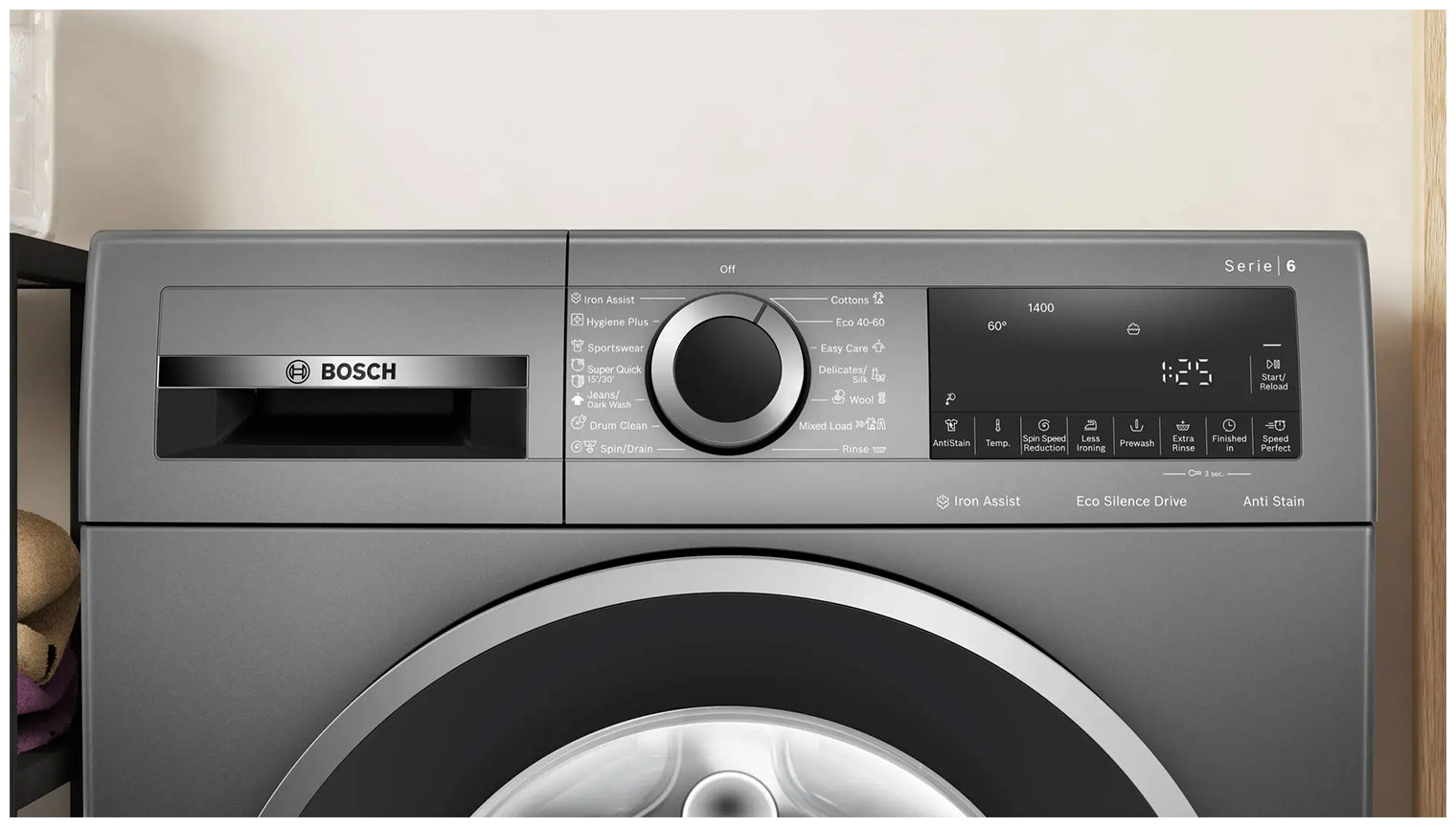 Основные сведения:Габариты: 84.5×59.8×59 смМаксимальная загрузка при стирке: 9 кгСкорость отжима: 1400 об/минКласс стирки: AКласс отжима: B Класс энергопотребления: A Программы:Количество программ: 14, в том числе -быстрая, деликатные ткани, джинсы, дополнительное полоскание, полоскание, предварительная стирка, самоочистка, слив/отжим, смешанные ткани, спортивная одежда, удаление пятен, хлопок, шелк, шерсть, экономичнаяУправление и индикация:ДисплейВыбор скорости отжимаВыбор температуры стиркиИндикатор оставшегося времениОтложенный стартСигнал окончания стиркиСтарт/паузаСистемы безопасности:Блокировка управления от детей Контроль пенообразованияКонтроль дисбаланса барабанаДополнительная информация:Потребление электроэнергии (кВт/100 циклов): 49Вес: 72.1 кг