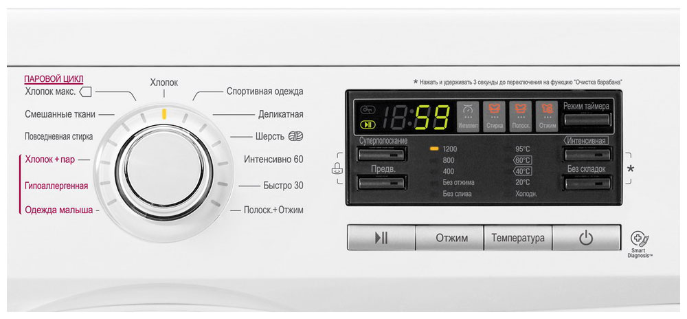 Общие данные:Габариты: 85х60х44 смМаксимальная загрузка: 6 кгСкорость отжима: 1200 об/минКласс стирки: AКласс отжима: BКласс энергопотребления: АПрограммы стирки:ХлопокХлопок макс.ПовседневнаяСмешанные тканиСпортивная одеждаБыстро 30ДеликатнаяИнтенсивно 60ШерстьОдежда малышаПолосканиеОтжимХлопок парГипоаллергеннаяОдежда малышаДополнительные функции:Функция пара SpaSteamФункция очистки барабанаИзменяемая скорость отжима (об/мин)Диапазон температуры стирки (): Холодная/20/40/60/95Таймер отсрочки (3-19 ч)Предварительная стиркаИнтенсивная стиркаЗадержка полоскания (Без слива)СуперполосканиеБез складокБез отжимаУправление и индикация:Широкий LED дисплейАвтоперезапуск AutorestartЗвуковой сигнал Вкл/ВыклИндикатор рабочего циклаИндикатор ошибок / СамодиагностикаИндикатор блокировки дверцыИндикатор времени до конца циклаСистемы безопасности:Функция защиты от пенообразованияДетектор загрузкиАвтобалансировкаБлокировка от детейДополнительная информация:Система Прямого Привода Inverter Direct DriveТехнология 6 движений заботы 6 MotionМобильная диагностика SmartDiagnosisНизкий уровень шума и вибрацииИнтеллектуальная система стиркиКоличество программ стирки / дополнительных режимов: 13/6Диаметр загрузочного люка, см / угол открытия двери: 30 / 180Пузырьковая поверхность барабанаРегулируемые опоры (мм): 10Глубина с учетом двери, мм: 460Цвет корпуса / Цвет дверцы / Цвет панели управления / Цвет дисплея: Белый / Белый / Белый / ЧерныйУровень шума стирка/отжим: 55/74 дБРасход воды (л): 56Энергопотребление, (кВтч): 1,02