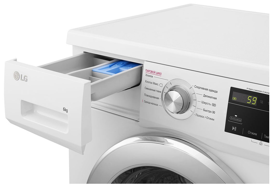 Общие данные:Габариты: 85х60х44 смМаксимальная загрузка: 6 кгСкорость отжима: 1200 об/минКласс стирки: AКласс отжима: BКласс энергопотребления: АПрограммы стирки:ХлопокХлопок макс.Смешанные тканиДетская одеждаСпортивная одеждаДеликатнаяРучная стирка/ШерстьБыстро 30ПолосканиеОтжимОсвежить Дополнительные функции:Изменяемая скорость отжима (об/мин): 1200/1100/1000/800/400/Без отжима Диапазон температуры стирки (): Холодная/20/30/40/60/95 Функция пара Steam Добавить белье Предварительная стирка Интенсивная стирка Режим таймераТолько отжим Очистка барабана Управление и индикация:АвтоперезапускLED дисплейСенсорный дисплейИндикатор рабочего циклаИндикатор времени до конца циклаИндикатор блокировки дверцыИндикатор ошибок/СамодиагностикаИндикатор Пуск/ПаузаИндикатор температурыИндикатор скорости отжимаЗвуковой сигнал Вкл/ВыклСистемы безопасности:АвтобалансировкаМобильная диагностика Smart DiagnosisБлокировка от детей Система пеноподавления Дополнительная информация:Детектор загрузкиТип барабана: Пузырьковый Подключение воды (горячая / холодная): Только холодный Материал перегородок в барабане: Нержавеющая сталь Функция автовзвешивания 6 движений заботыИнверторный мотор с прямым приводомУровень шума при стирке (дБ): 53Уровень шума при отжиме (дБ): 74