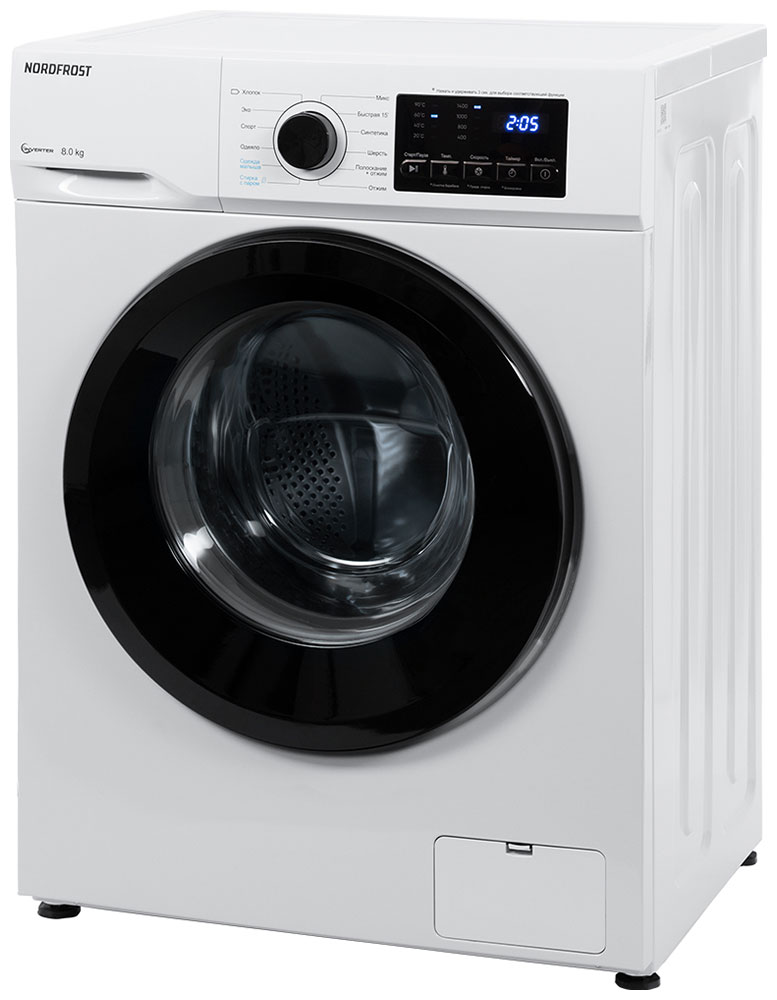 Общие данные: Габариты: 85х59.5х51 смМаксимальная загрузка: 8 кгСкорость отжима: 1400 об/минКласс стирки: A Класс отжима: BКласс энергопотребления: AЦвет корпуса: белыйЦвет люка: черныйПрограммы стирки:Количество программ стирки: 12Хлопок Синтетика Смешанные ткани Детские вещи Эко Спорт Пуховое одеяло Шерсть Стирка с паром деликатная стирка Быстрая 15 мин Полосканиеотжим Отжим Очистка барабана Дополнительные функции: Контроль пенообразования Контроль дисбаланса Функция памятиОтсрочка стартаПредварительная стиркаУправление и индикация: Управление: электронно – механическоеДисплей Регулировка температуры стирки: кнопочнаяЭлектронный контроль скорости отжима: кнопочныйИндикация: времени отложенного старта, хода выполнения программы, старта / паузы, закрытого люка, неисправностейСистемы безопасности:Блокировка от детейДополнительная информация: Тип загрузки: фронтальнаяТип двигателя: инверторныйОбъем бака: 55 лМаксимальная температура стирки: 90 СМатериал бака: полимерМатериал барабана: нержавеющая стальРазборной бак Подсветка барабанаДиаметр дверцы: 47.2 смМаксимальный угол открывания дверцы люка: 150Тип открывания/закрывания люка: механическийЭнергопотребление: 176 кВт*ч/годПотребление воды за 1 цикл стирки: 62 лУровень шума при стирке: 60 дБУровень шума при отжиме: 76 дБКласс влагозащиты: IPX4Вес: 62 кг