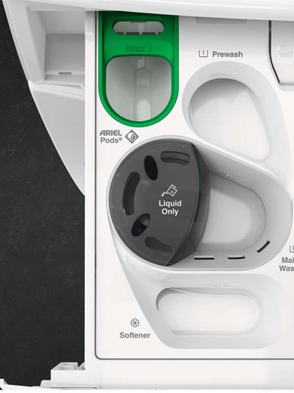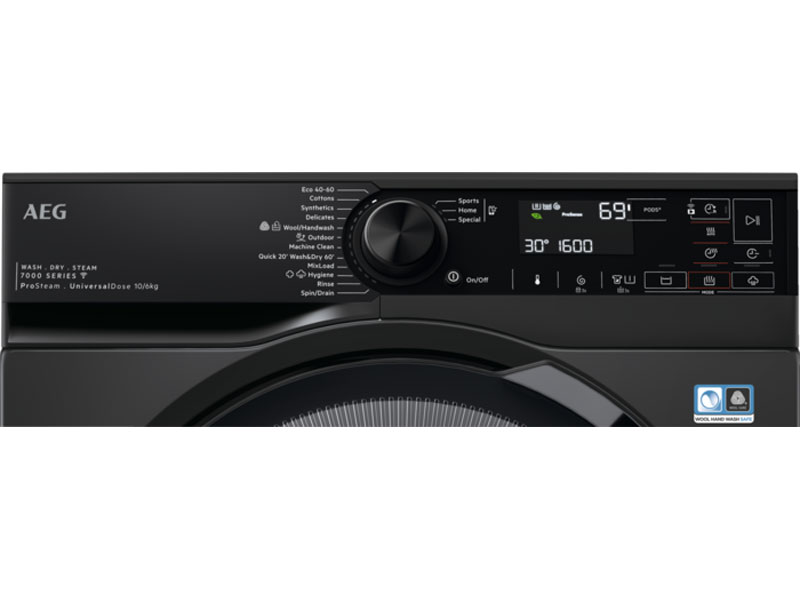Этот прибор, сертифицированный Woolmark Blue, стирает и сушит повседневное белье, деликатные ткани и шерсть. UniversalDose – уникальный отсек для капсул для стирки.