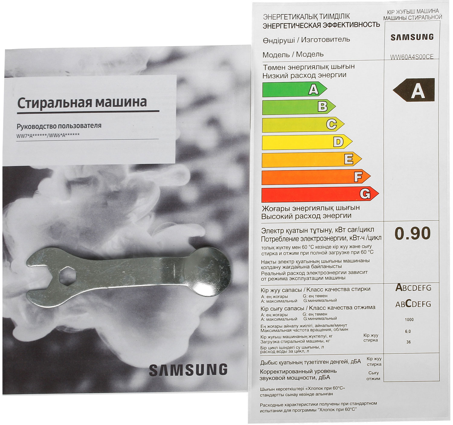 Очистка происходит за счет сочетания замачивания, пульсации и максимальных оборотов отжима.Удобное управлениеСтиральная машина Samsung WW60AG4S00CE оснащена поворотными ручками и кнопками для выбора подходящего режима, изменения скорости отжима и температуры. Вся информация о работе выводится на экран.