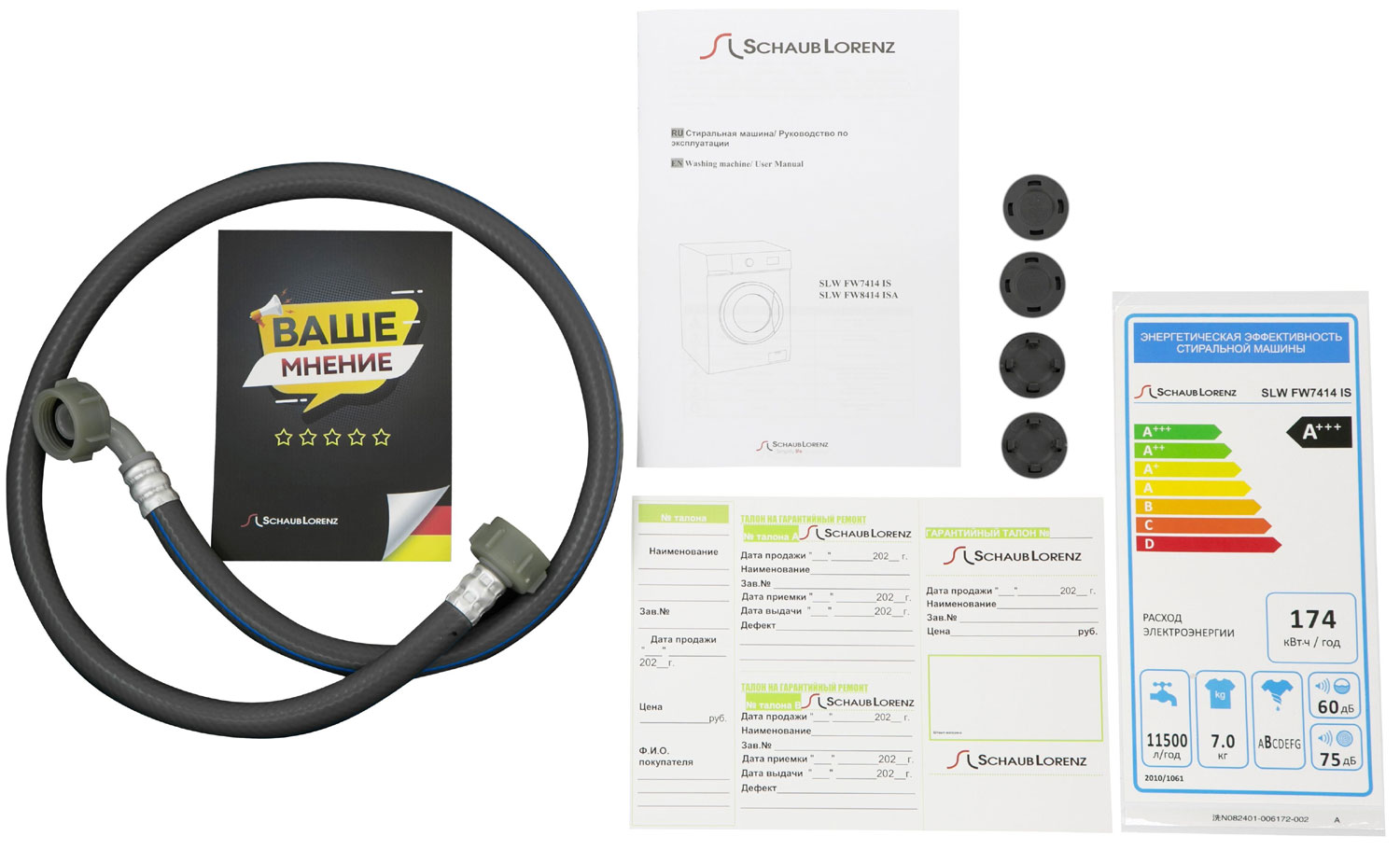 Комплектация стиральной машины включает в себя шланг подачи воды, сливной шланг, и пластиковый держатель для сливного шланга. Машина предлагает функцию отсрочки запуска, позволяющую запланировать стирку на определенное время. Есть возможность использования функции пара (Steam Assist), которая помогает эффективно устранять загрязнения и освежать белье.
