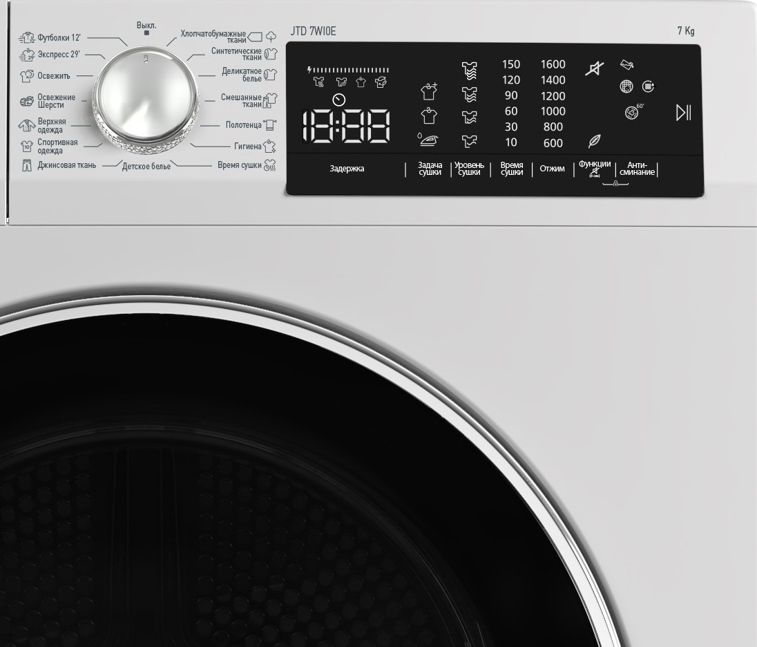 Сушильная машина Jackys JTD 7WI0E представлен в современном стиле с тонированным люком и LED дисплеем. Барабан с загрузкой 7кг сделан из нержавеющей стали и дополнен подсветкой. Сушильная машина Jackys JTD 7WI0E имеет конденсационный тип сушки.
