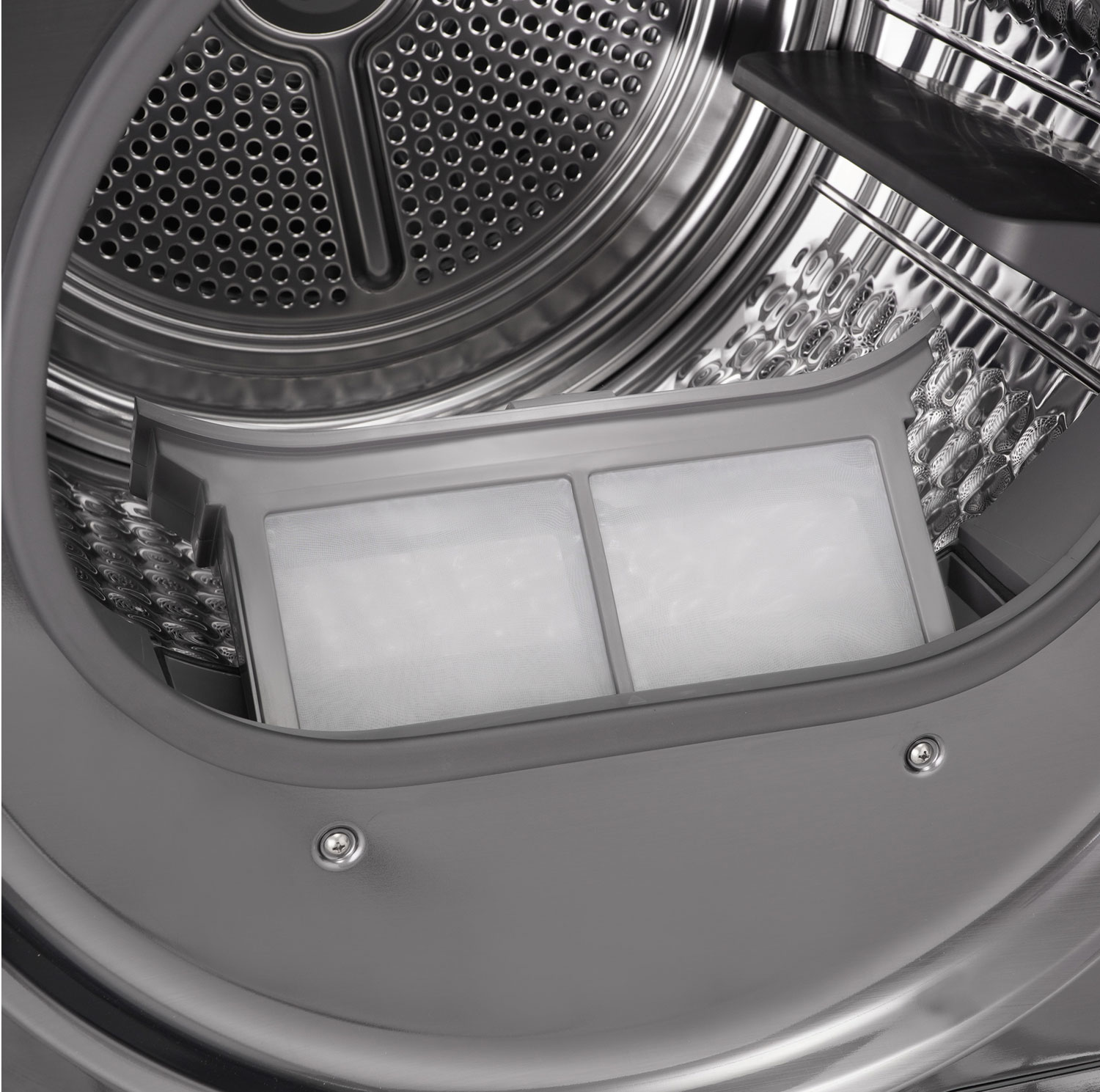 Задача горячего контура – нагреть воздух, который далее, при помощи вентилятора, попадает в барабан и забирает влагу из мокрых тканей. Второй активный холодный контур эту влагу собирает и отправляет в съемный резервуар. Такая технология позволяет меньше нагревать воздух, что помогает сушить вещи деликатнее и существенно снижать потребление электроэнергии.