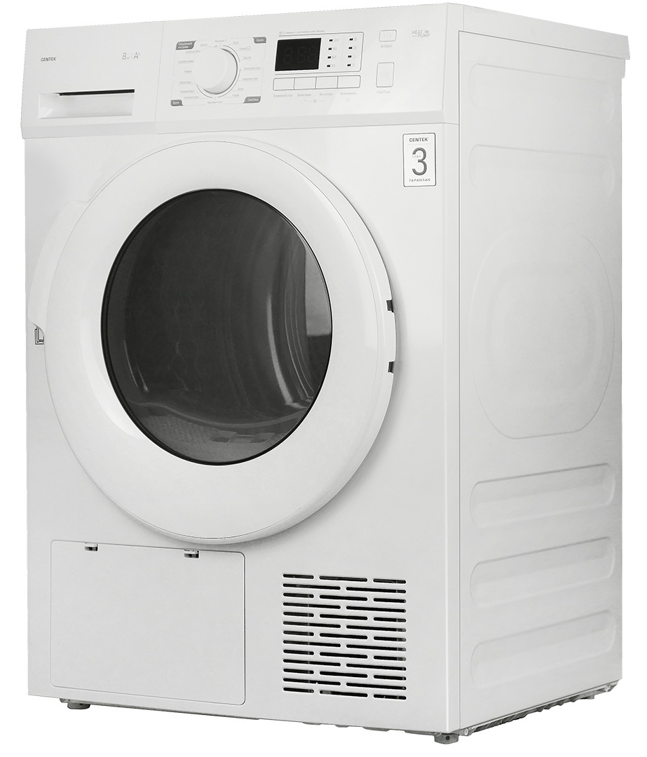 Сушильная машина CENTEK CT-1990 – сухая, свежая и мягкая одежда без лишней траты времени каждый день Машина CT-1990 позволит избавиться от необходимости просушивать белье по всей квартире или на балконе, используя веревки, раскладушки для сушки, батареи и т.д.. В данной модели просто высушить джинсы, джемпер, постельное белье или другую плотную ткань. Модель CT-1990 оснащена тепловым насосом, что позволяет бережно ухаживать за бельем избегая усадки, и не пересушивать его.