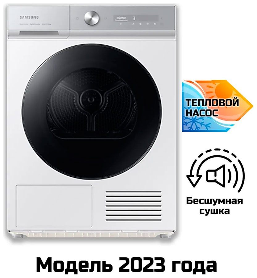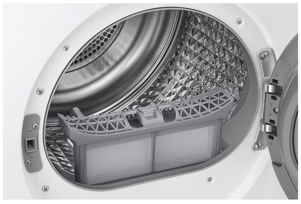 Общие данные:Габариты: 85x60x60 смМаксимальная загрузка при стирке (кг): 9Класс сушки: BКласс энергопотребления: AПрограммы:AI DryCool AirФункция Iron Dry (сушка для дальнейшего отглаживания утюгом)OutdoorSelf Tub DryФункция Time Dry (сушка в течение заданного периода времени)ПолотенцаФункция Warm Air (сушка теплым воздухом)ШерстьСписок функций: QuickDrive, WRINKLE PREVENT, DRYING LEVEL, TIME, Damp Alert (on/off), SMART CONTROL, Drum Light (on/off), Child Lock (on/off), Sound (on/off), CalibrationAir RefreshПостельные принадлежностиФункция Quick Dry 35 минХлопокДеликатная стиркаShirtsСинтетикаФункция Silent Dry (бесшумная сушка)Функция Super SpeedHygiene CareДополнительные функции:Уровень сушки: 4 уровняСушилка для бельяЗащита от образования складокУправление и индикация:AI ControlSmart ThingsФункция Smart ControlLED дисплейЗвуковая индикация о смешанной загрузке / оповещение о влажном бельеWiFi EmbeddedСистемы безопасности:Блокировка от детейДополнительная информация:Тип сушилки: Тепловой насосВнутренняя подсветка барабанаAI DryQuickDriveДвигатель DITКомпрессор: ИнверторReversible DoorТип барабана DiamondСистема OptimalDryПолная глубина, включая выступающую часть: 650 ммМатериал барабана: нержавеющая сталь Время цикла (мин): 215 минЭнергопотребление (годовое): 182Класс эффективности конденсации: BУровень шума (сушка): 62 дБХладагент (тип): R290