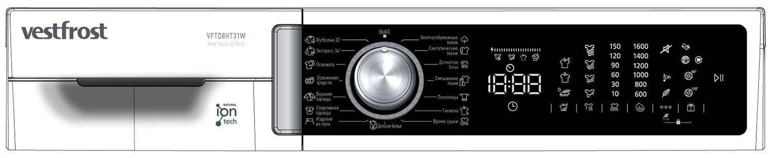 Общие данные:Габариты: 84.5×59.6×60.9 смМаксимальная загрузка: 8 кгКласс эффективности сушки: BКласс энергопотребления: AПрограммы: 15, в том числеПрограмма ИонизацияДеликатная сушкаФункция против сминанияДополнительные функции:Отложенный стартУправление и индикация:Тип дисплея: сенсорныйДополнительная информация:Тепловой насосПотребление энергии (кВт/год): 285Уровень шума (сушки), (дБ): 65Объём барабана, л: 112Диаметр загрузочного люка, (см): 47Диаметр отверстия загрузки, (см): 33Дизайн дверцы: тёмное стеклоМатериал барабана: нержавейкаВес: 46.4 кг