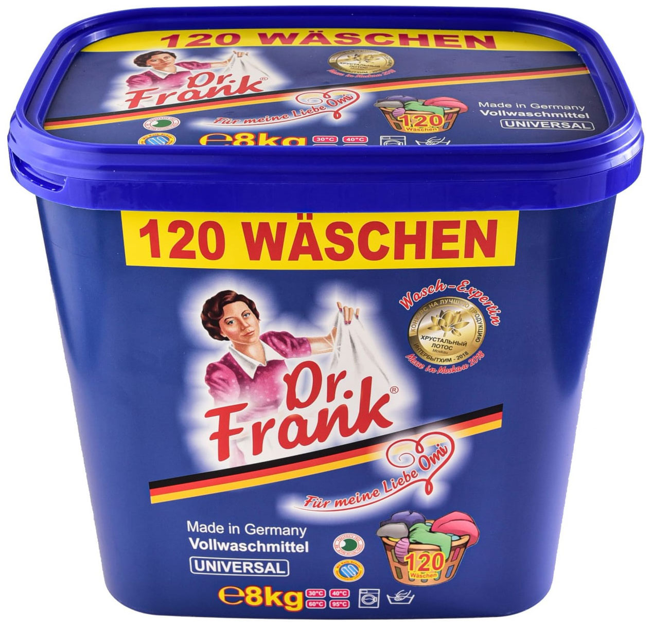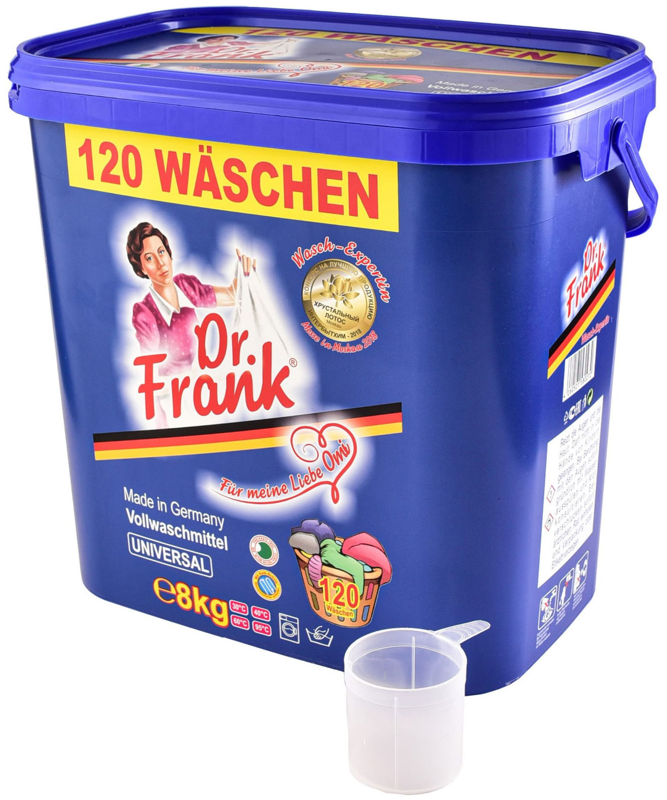 Немецкая рецептура, подтвержденная дерматологамиУниверсальный концентрированный стиральный порошок Dr.Frank подходит для стирки цветного, белого, тёмного и чёрного белья. Средство мягко и деликатно воздействует на волокна ткани, надолго сохраняет мягкость и яркость вещей из хлопка, льна и синтетики, предотвращая деформацию и усадку. Порошок можно использовать в машинке автомат или для ручной стирки.Активный кислород удаляет старые въевшиеся пятна и запах пота.